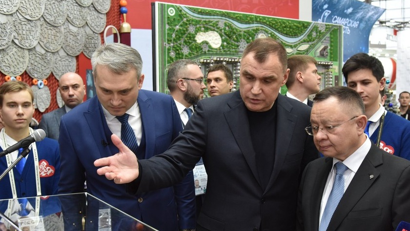 Стенд региона посетил министр строительства и ЖКХ России Ирек Файзуллин. Глава Марий Эл рассказал ему о потенциальных возможностях региона, реализуемых проектах и планах.