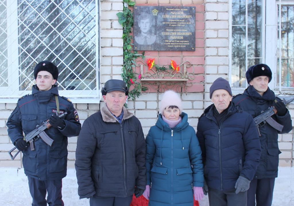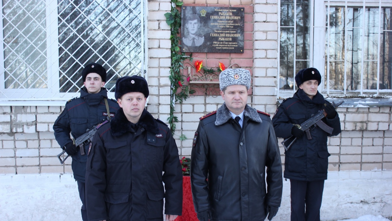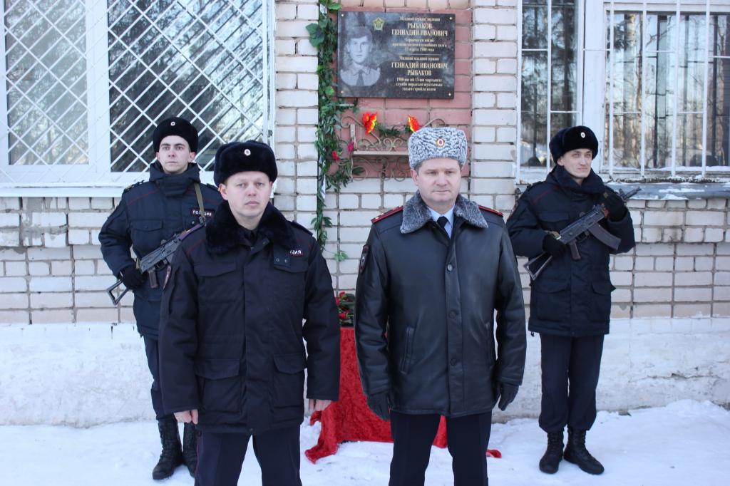 На здании отделения полиции № 5 в посёлке Куженер открыли мемориальную доску, посвящённую памяти погибшего сотрудника ОВД Геннадия Рыбакова.