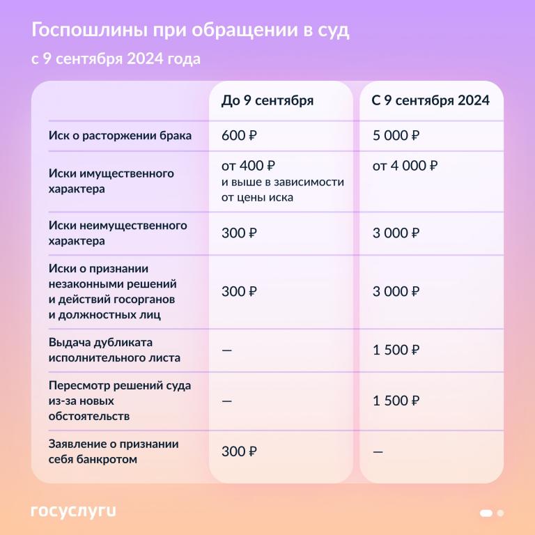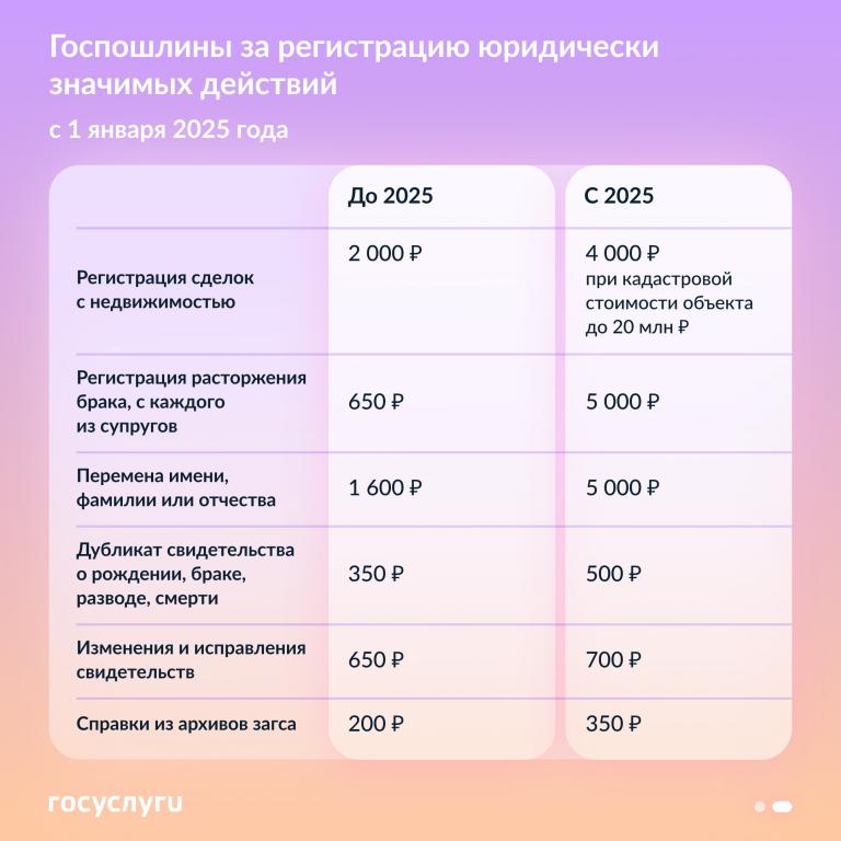 Некоторые пошлины для физлиц при обращении в суд и за регистрацию юридически значимых действий повышаются. Например, станет дороже оформить развод или сделку с квартирой.