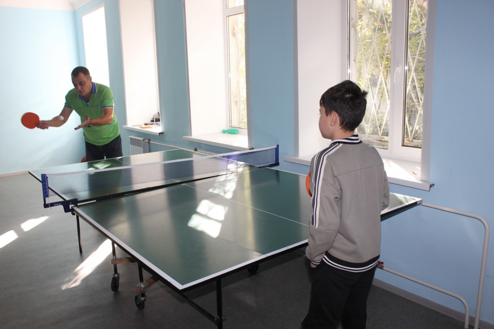 После творческой части встречи общественник предложил ребятам посетить спортзал, где они поиграли в настольный теннис и позанимались на тренажёрах.