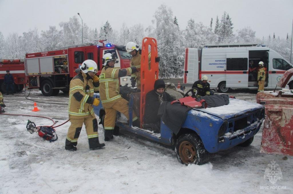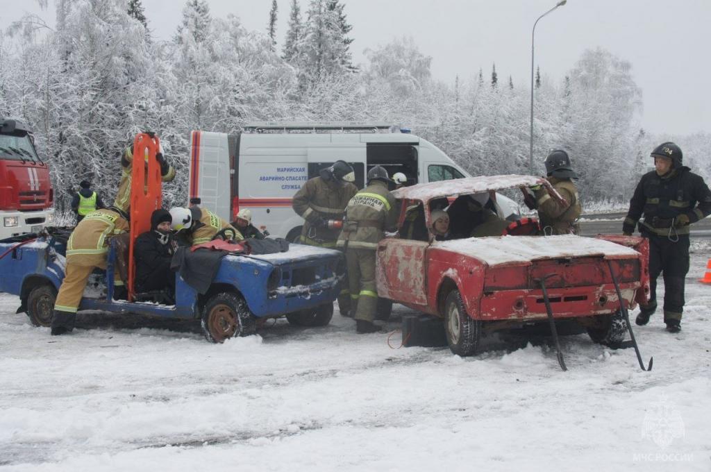 Сегодня в Медведевском районе прошли учения по спасению людей и ликвидации последствий ДТП в зимнее время.