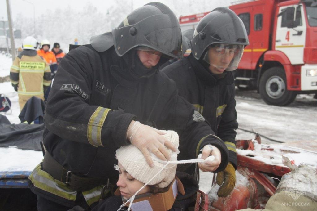 В результате условного ДТП два человека погибли. Четверо пострадали — их заблокировало внутри машин. За статистов были манекены.