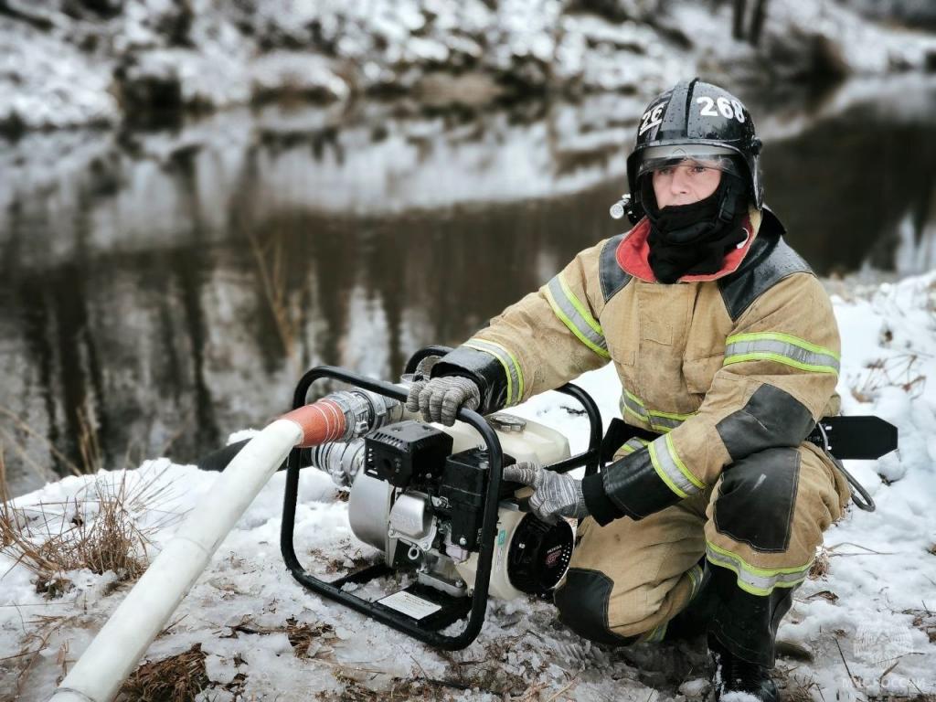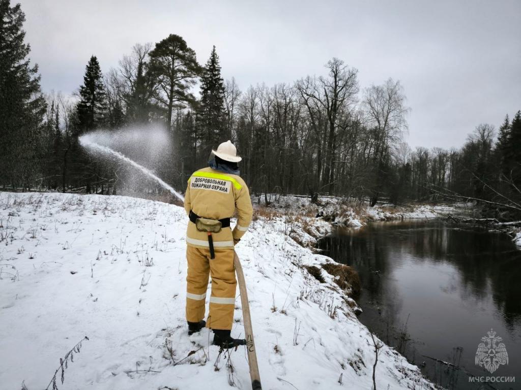 Новоиспеченные добровольцы показали результаты обучения. Они забрали воду из реки Рутка и подали стволы в очаг условного возгорания при помощи мобильного поста пожаротушения.