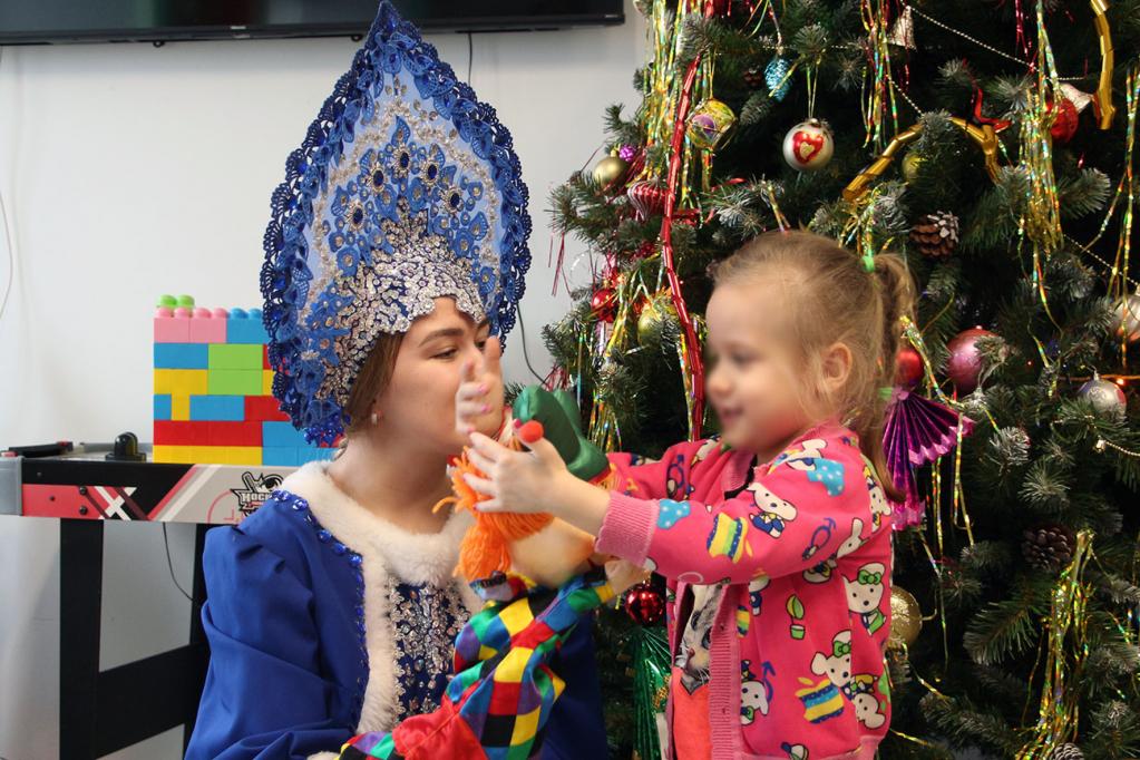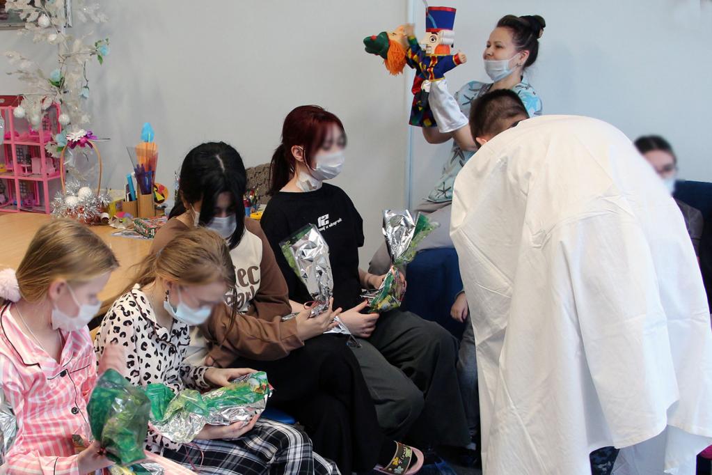Снегурочка и её маленькие помощники — Щелкунчик, Арлекин и Пьеро — показали ребятам небольшое представление с шутками и прибаутками, что вызвало у юных пациентов искренний восторг и радость. Они смешили детей своими забавными выходками и яркими костюмами.