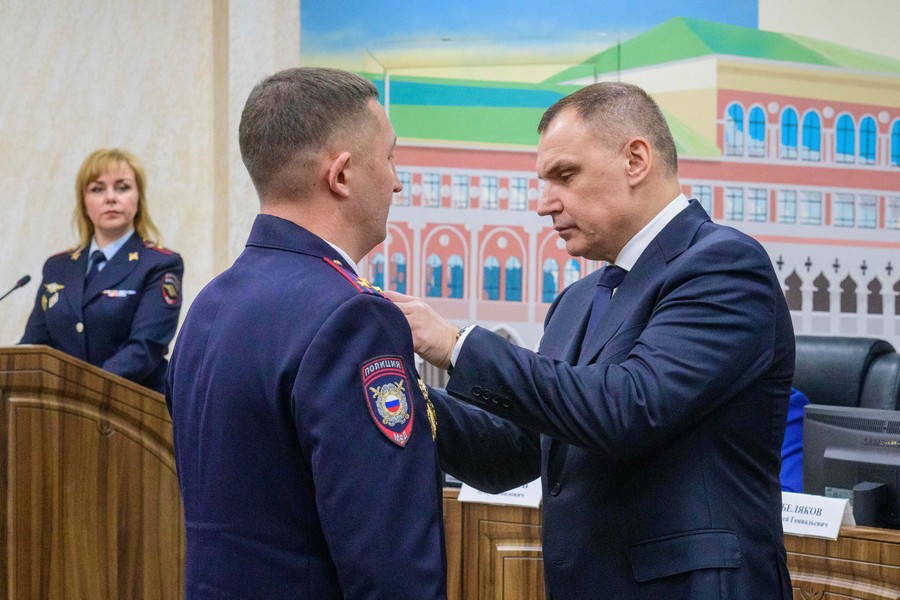 Юрий Зайцев поблагодарил сотрудников МВД за эффективную работу и вручил награды.