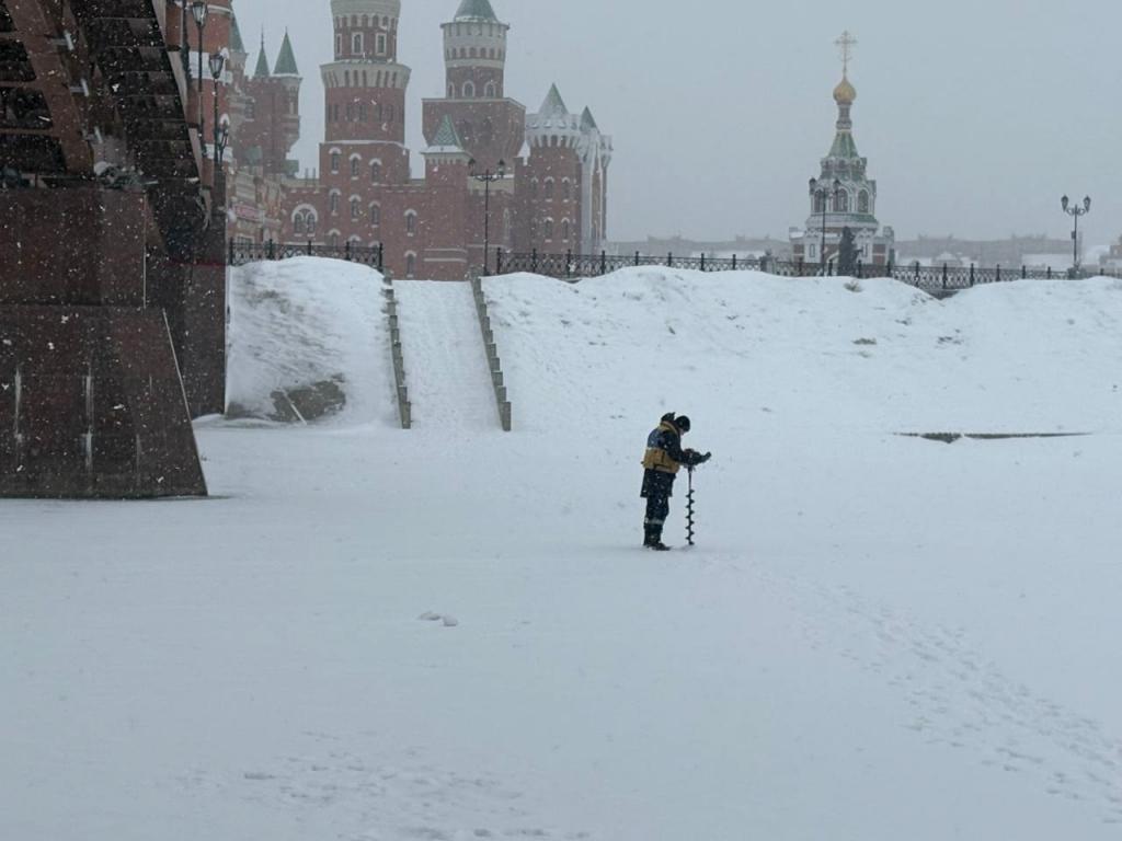 - В Козьмодемьянске толщина льда до 23 см, на пешеходной тропе — до 20 см. У берега вдоль трещин выступает вода.