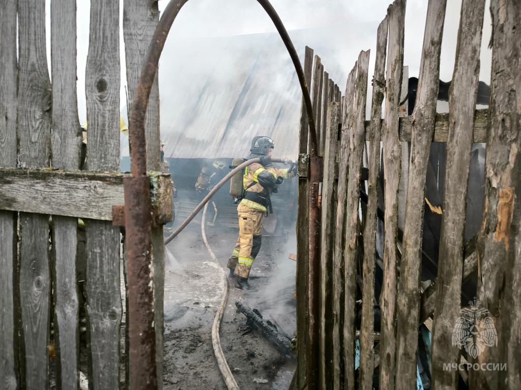 Огонь охватил частное хозяйство. В это время дома находилась пожилая женщина и знакомый её дочери, который приходил ухаживать за бабушкой.