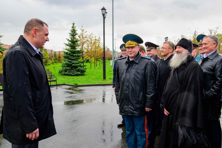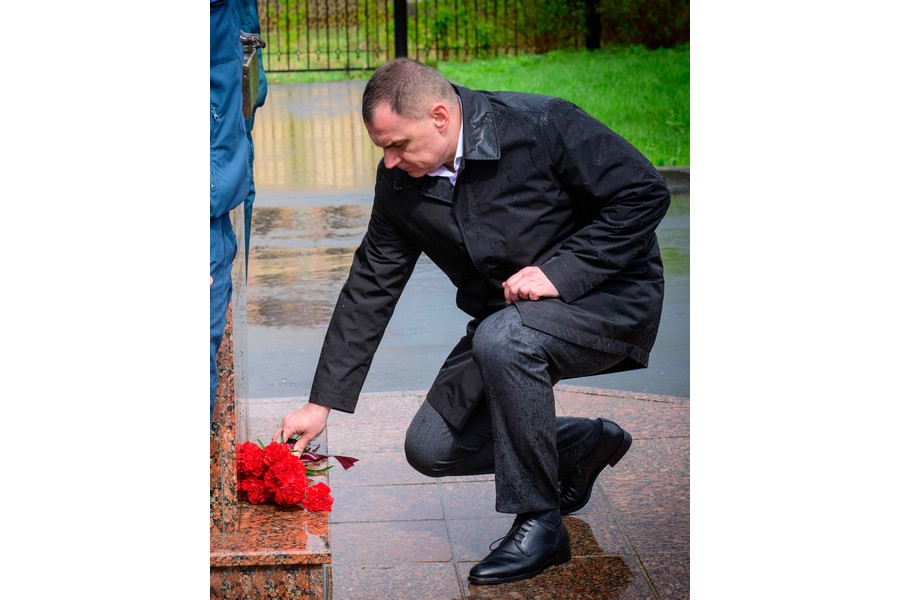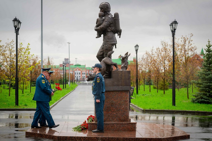 По традиции он также возложил цветы к памятнику «Пожарным и спасателям», который расположен в Воскресенском парке.