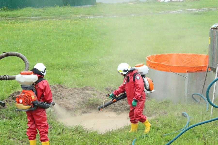 По легенде автоцистерну атаковали беспилотники. В результате автомобиль опрокинулся в кювет, что привело к разливу около 18 тонн нефти. В рамках учений сработал условный сигнал об угрозе атаки БПЛА.