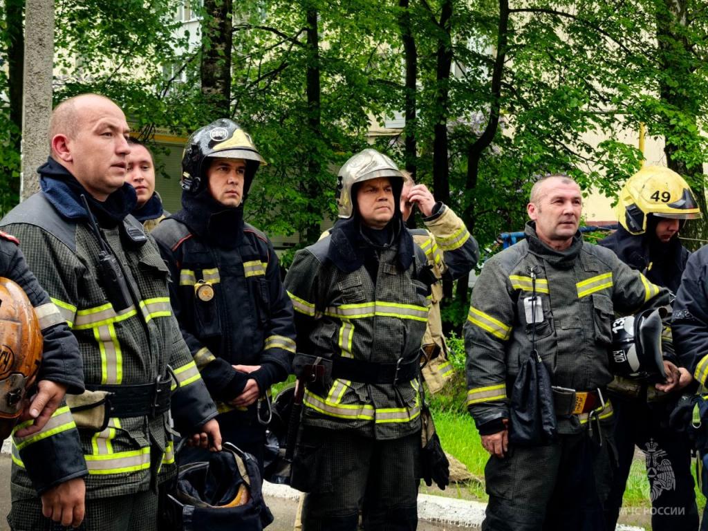 По замыслу тренировки пожар возник на шестом этаже в комнате из-за короткого замыкания электропроводки. Условный огонь быстро распространялся по сгораемым материалам: мебели и отделке.