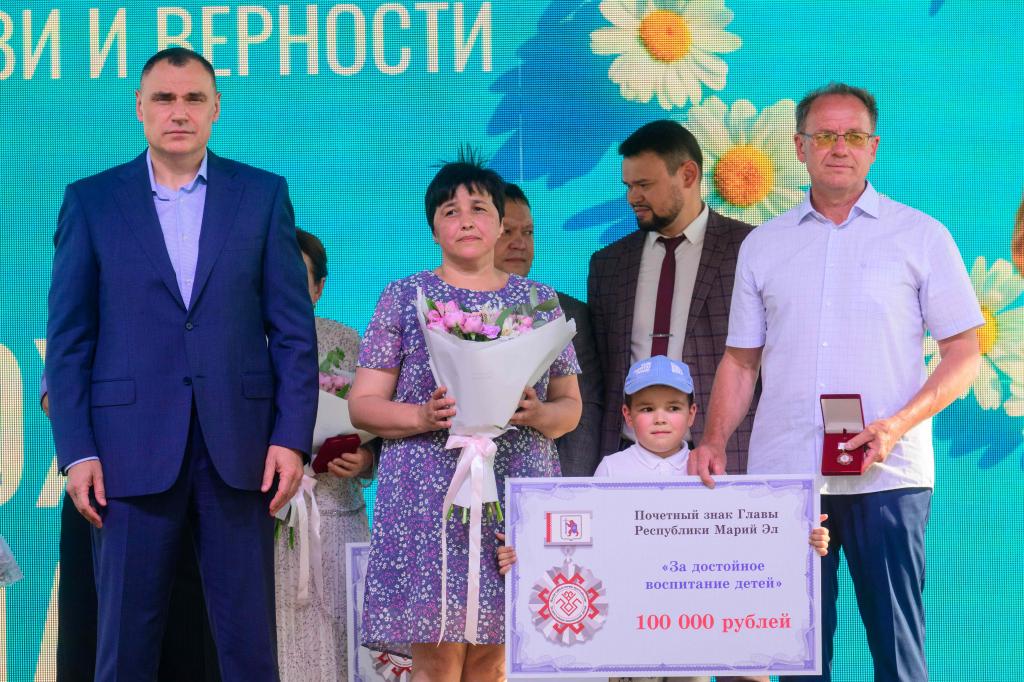 Почётных знаков главы Республики Марий Эл за заслуги в воспитании детей, развитие и укрепление семейных традиций и ценностей, формирование чувства патриотизма и нравственности были удостоены Халида Гайнуллина, Дмитрий Долгоруков, Юрий Маков, Раисия Попова, Любовь Фролова.