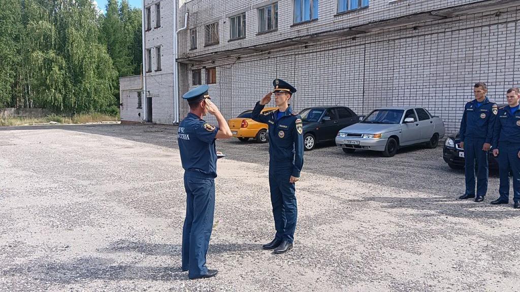 Начальник ГУ МЧС по Марий Эл генерал-майор внутренней службы Виктор Шангин вручил молодым офицерам служебные удостоверения.