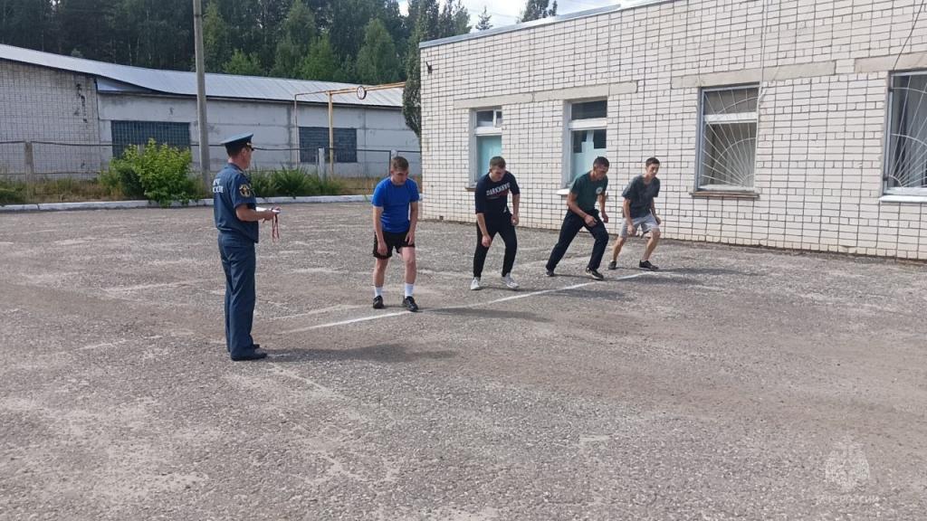Мероприятие началось со строевого смотра. Выпускники надевали на скорость боевую одежду пожарного, подтягивались, сдавали нормативы по челночному бегу, бежали километр по пересеченной местности. Отдельное внимание было уделено строевой подготовке.