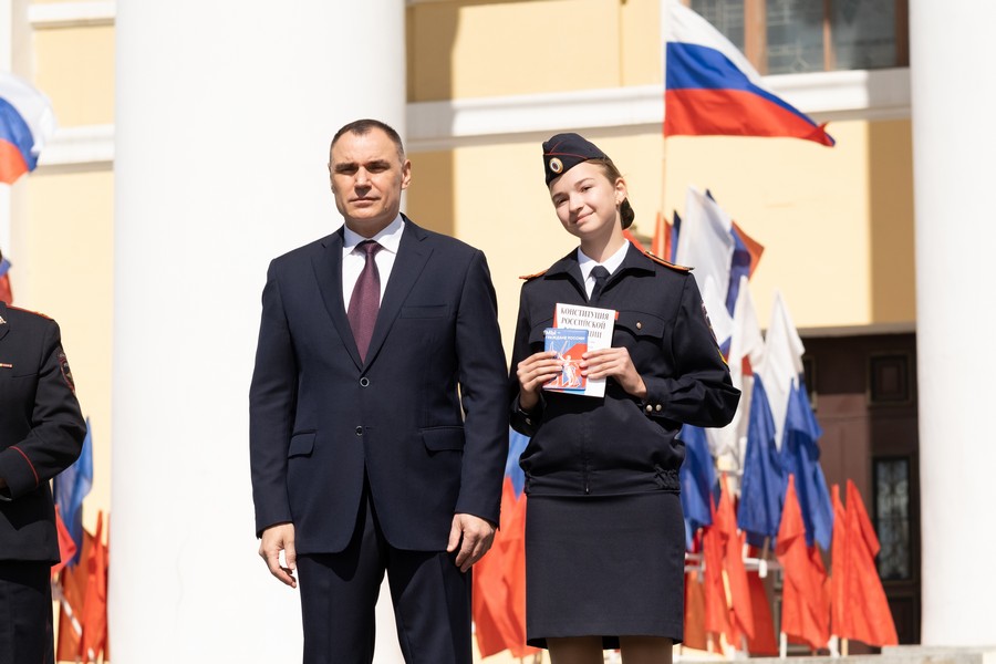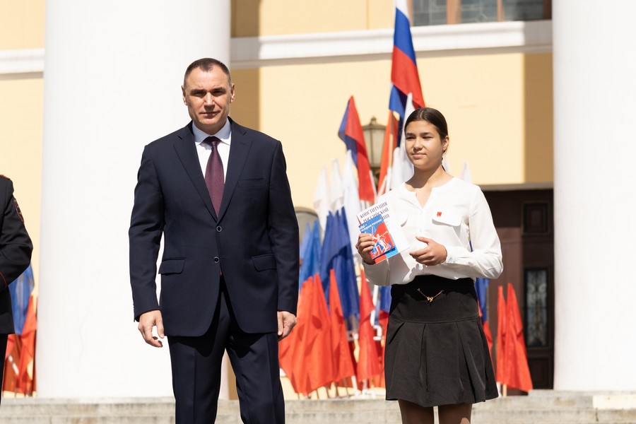 Глава региона также вручил юным жителям Марий Эл паспорта РФ. На площади прозвучала их клятва.