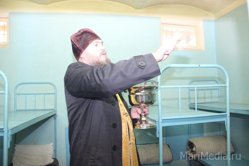 После этого, как сообщили в пресс-службе МВД РФ по Марий Эл, священник со святой водой и кадилом окропил изолятор временного содержания УМВД РФ по Йошкар-Оле, рассчитанный на 14 человек, а также все камеры видеонаблюдения и дежурных полицейских (они, кстати, работают здесь в две смены по 24 часа). Наравне с 13-ю мужчинами трудится единственная сотрудница ИВС Алина Подыганова.