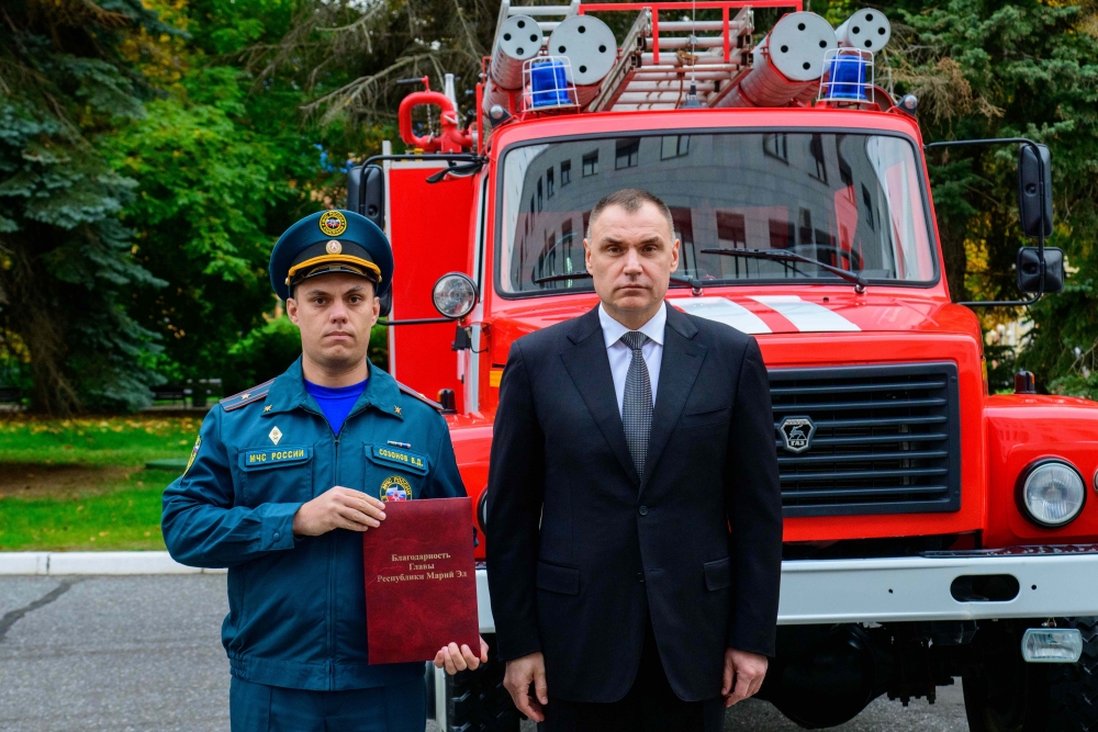 На вручении пожарно-спасательной техники благодарностью главы Республики Марий Эл был награжден дознаватель отдела административной практики и дознания управления административной деятельности и профилактической работы ГУ МЧС по Марий Эл Владимир Созонов.