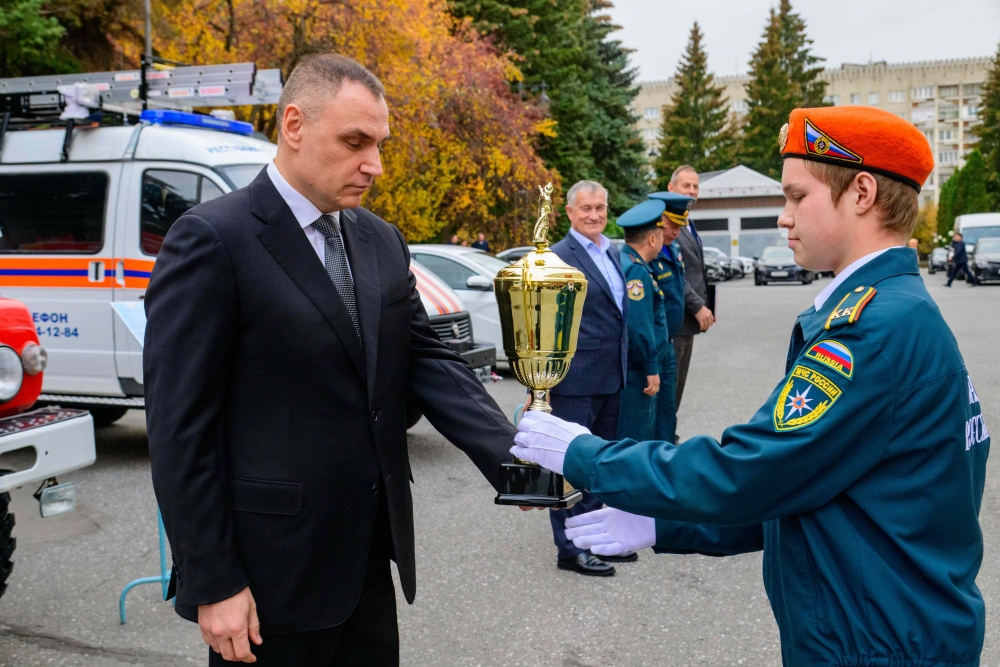 В рамках масштабных командно-штабных учений сил гражданской обороны глава региона вручил подразделениям МЧС ключи от новой пожарно-спасательной техники.