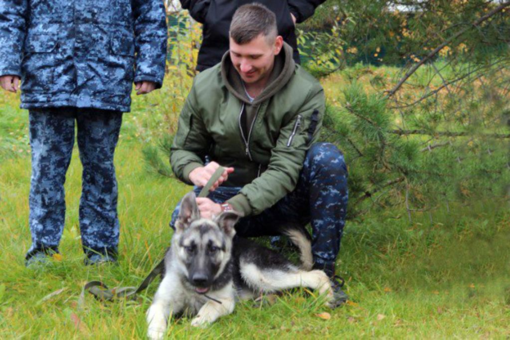 За каждым щенком закреплён сотрудник кинологического подразделения.