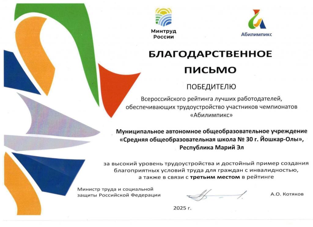 - МАОУ «СОШ № 30 г. Йошкар-Олы» — 3-е место.