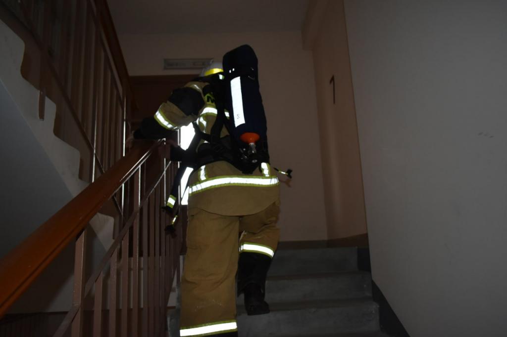 Во время занятия спасатели продемонстрировали высокую физическую подготовку и профессионализм, поднимаясь несколько раз на десятый этаж высотного здания в полном снаряжении.