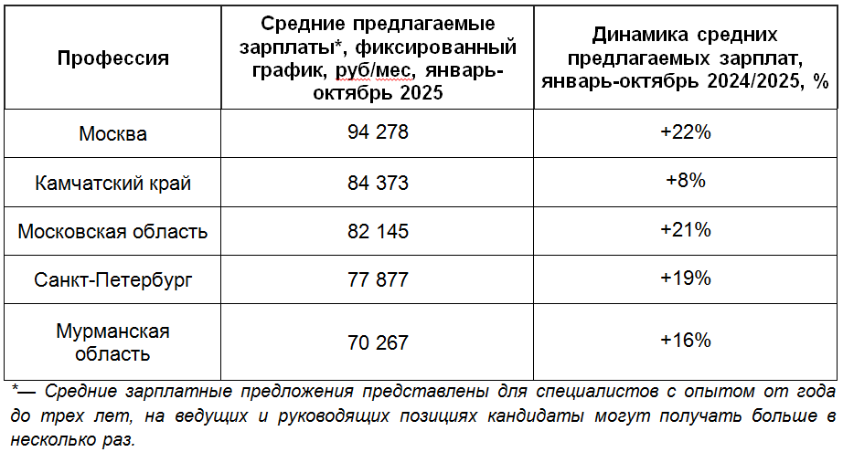 Третье, четвертое и пятое места занимают Московская область, Санкт-Петербург и Мурманская область. В Подмосковье бухгалтеры могут рассчитывать на 82 145 руб/мес (+21%), в Санкт-Петербурге — на 77 877 руб/мес (+19%), а в Мурманской области — на 70 267 руб/мес (+16%). В регионах на уровень доходов влияет высокая концентрация производственных, логистических, девелоперских и торговых компаний, которые нанимают бухгалтеров с широким функционалом и необходимостью работать сразу с несколькими юридическими лицами.