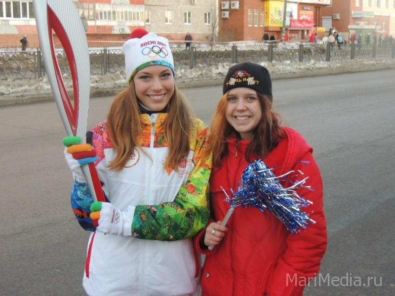 МариМедиа, 29 декабря. Эстафета огня XXII зимних Олимпийских игр 2014 года прошла в субботу в Йошкар-Оле. Факел по улицам площадям, бульварам, мостам марийской столицы огонь пронес 71 человек. Старт эстафете дал министр спорта Марий Эл Владимир Чумаков. 14 километровый маршрут эстафеты прошел в основном по центральным улицам Йошкар-Олы мимо городских достопримечательностей. Например, Олимпийский огонь встречали на площади Оболенского-Ноготкова. Еще одна достопримечательность марийской столицы — Патриаршая площадь, где есть уникальные часы с движущимися фигурами 12 апостолов. Финишировала эстафета там, где и стартовала, — в ледовом дворце «Марий Эл». Завершила эстафету Олимпийского огня гимнастка Анна Родионова, которая вместе с главой Марий Эл Леонидом Маркеловым зажгла чашу олимпийского огня в ледовом дворце «Марий Эл».