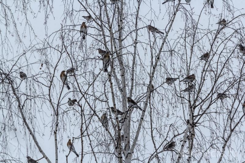 МариМедиа, 15 января. Жители марийской столицы с интересом разглядывали необычных для зимы птиц, оккупировавших ягодные кустарники. Как выяснилось аномальная погода привела в Йошкар-Олу дроздов рябинников.