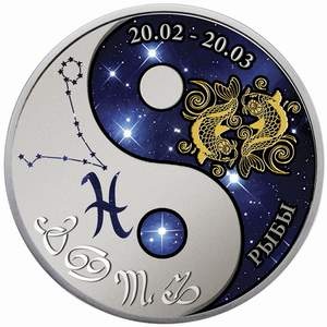 Другой вариант подарка — серебряные позолоченные монеты серии «Знаки Зодиака». На реверсе каждой монеты, представленной в виде знака «Инь-Янь», расположено позолоченное изображение одного из знаков Зодиака. В центре аверса каждой монеты изображено единство Солнца и Луны на фоне звездного неба.
