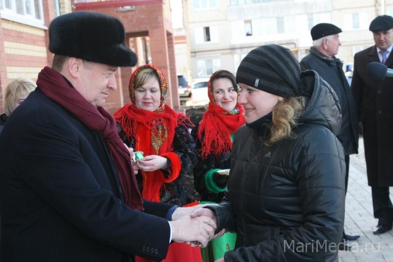 МариМедиа, 11 апреля. В поселке Знаменский Медведевского района местные жители праздновали новоселье. Накануне Глава Марий Эл Леонид Маркелов и глава администрации района Даиль Шагиахметов вручали ключи от новых квартир переселенцам из аварийного жилья.