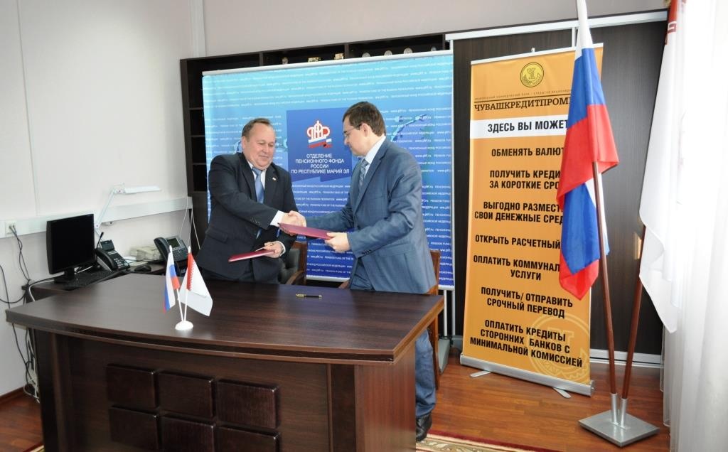 МариМедиа, 8 декабря. Теперь жители Марий Эл могут получать пенсии и другие социальные выплаты в офисе АКБ «ЧУВАШКРЕДИТПРОМБАНК» ОАО в г. Йошкар-Ола. Это стало возможным благодаря подписанию соответствующего договора о сотрудничестве между Банком и региональным Отделением Пенсионного фонда.