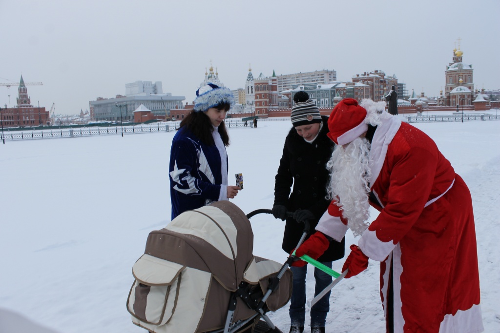МариМедиа, 29 декабря. В рамках профилактического мероприятия «Внимание — дети!», в преддверии новогодних каникул сотрудники отдельного батальона ДПС ГИБДД Йошкар-Олы провели акцию «Полицейский Дед Мороз» на Патриаршей площади.