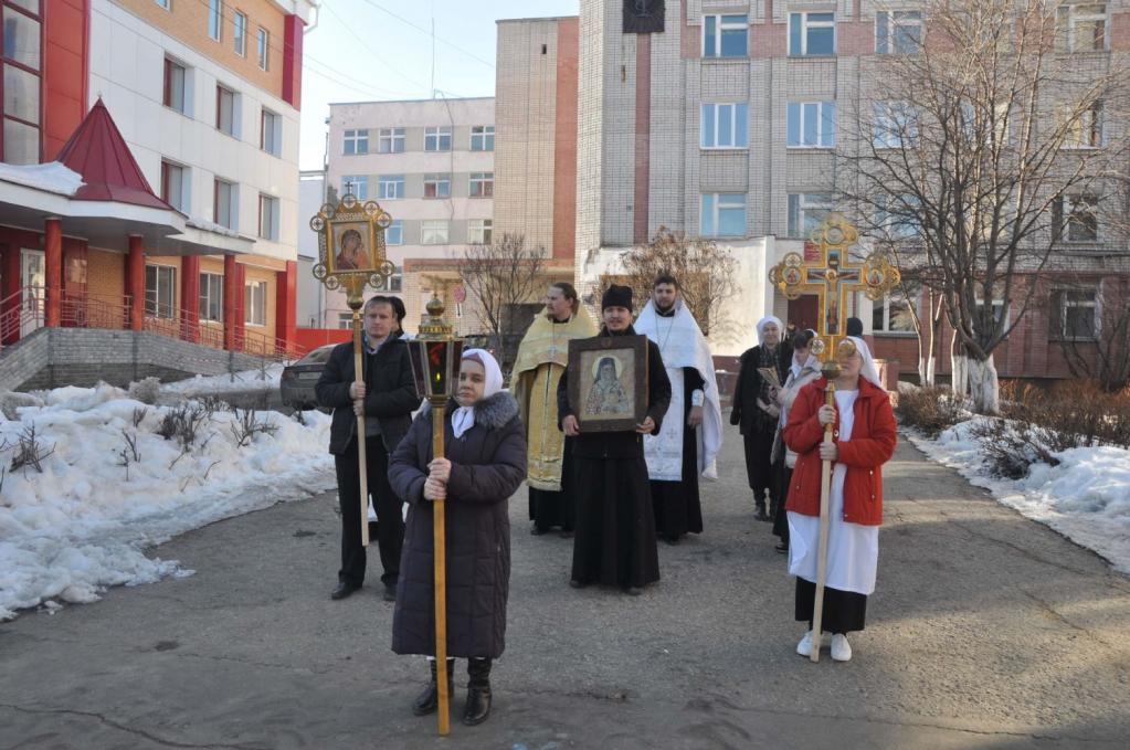 Ковчег с мощами был встречен крестным ходом. В молитвенной комнате больницы был совершен молебен святителю Нектарию, после чего собравшиеся приложились к святыне.