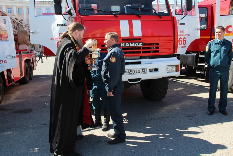 МариМедиа, 7 мая. С наступлением самого напряженного времени для пожарных республики, представители православной церкви совершили обряд освящения автомобилей спасательного ведомства.