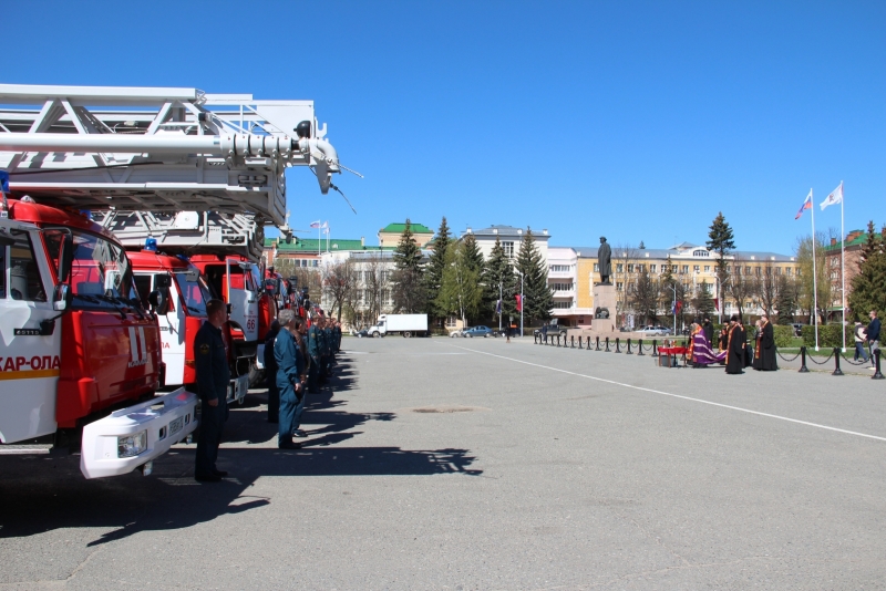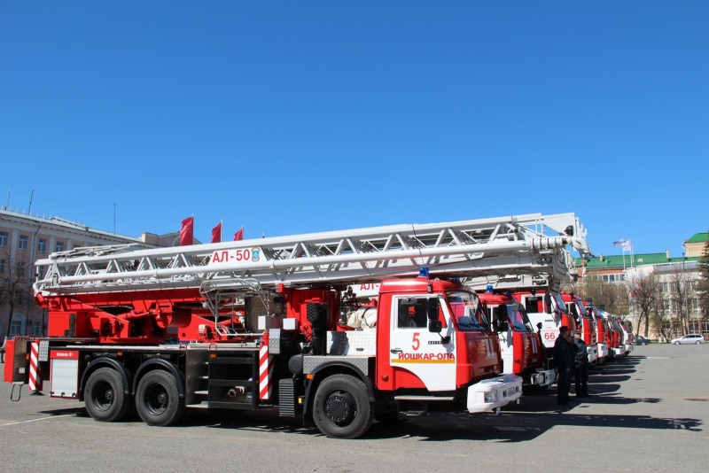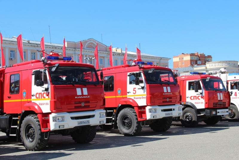 Сегодня на площади им. В. Ленина припарковались 10 единиц пожарной техники, которая поступила на вооружение в 2014 году в подразделения ГУ МЧС по Марий Эл и Управления государственной противопожарной службы Марий Эл.