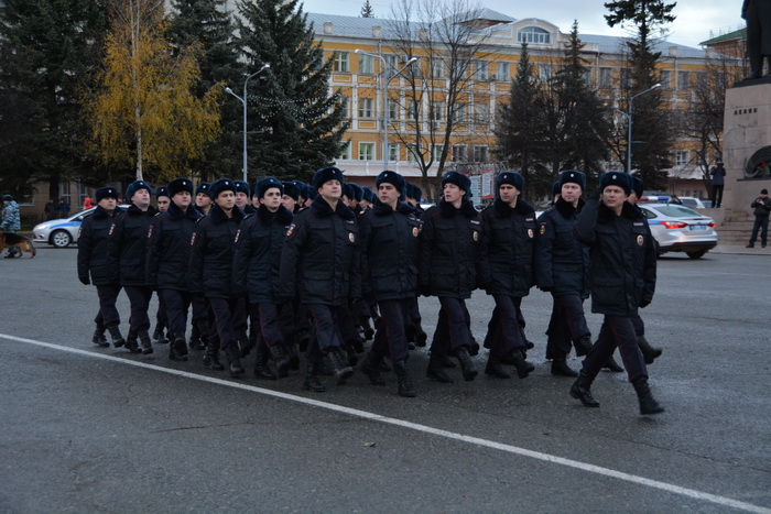 МариМедиа, 7 ноября. В центре марийской столицы прошел открытый общегородской строевой смотр и развод полицейских нарядов. Был задействован личный состав строевых подразделений — батальонов ППС и ДПС, вневедомственной охраны, а также представители народных дружин, частных охранных организаций Йошкар-Олы.