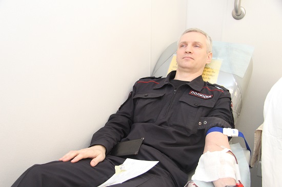 У здания республиканского Управления ГИБДД была установлена мобильная станция переливания крови. После прохождения необходимых процедур — регистрации, обследования у терапевта, проверки группы крови в лаборатории — сотрудники сдали кровь.