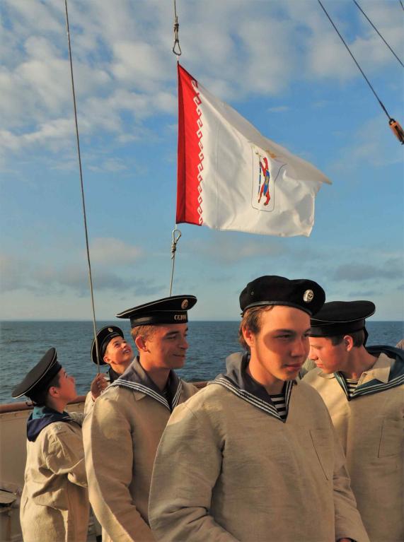 МариМедиа, 18 сентября. Среди курсантов на борту барка «Седов» были и представители парусного клуба «Паллада» из Козьмодемьянска. Проходя по водам Балтийского моря в районе Поморского воеводства, государства Польша и вблизи Российского порта Балтийск экипаж и курсанты учебного парусного судна «Седов» отдали дань памяти советским морякам - участникам Великой Отечественной войны 1941-1945 годов. Был зачитан список моряков - земляков из 26 имен, на воду спущен венок с траурной лентой и развеяна земля, специально привезенная из Марий Эл и Чувашии.