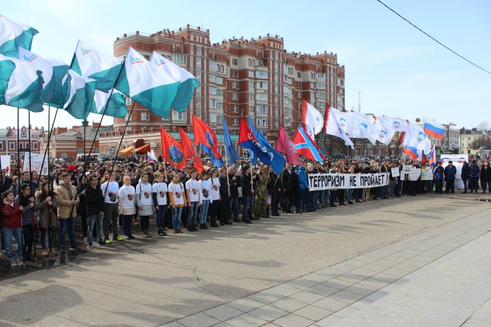 В Йошкар-Оле состоялся митинг «Вместе против террора» Организатором выступила общественная организация ветеранов (пенсионеров) войны, труда, Вооруженных Сил и правоохранительных органов. На площади Никонова собралось более трех тысяч человек — представители общественных организаций, молодежь, неравнодушные жители города. Об этом сообщает пресс-служба мэрии. Жители города выразили свое негативное отношение к терроризму, говорили о мире и согласии, объединении граждан нашей страны перед лицом терроризма, почтили память жертв террора минутой молчания.