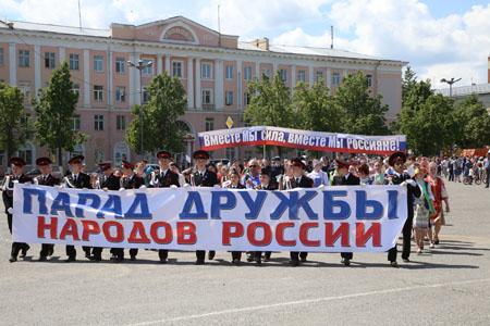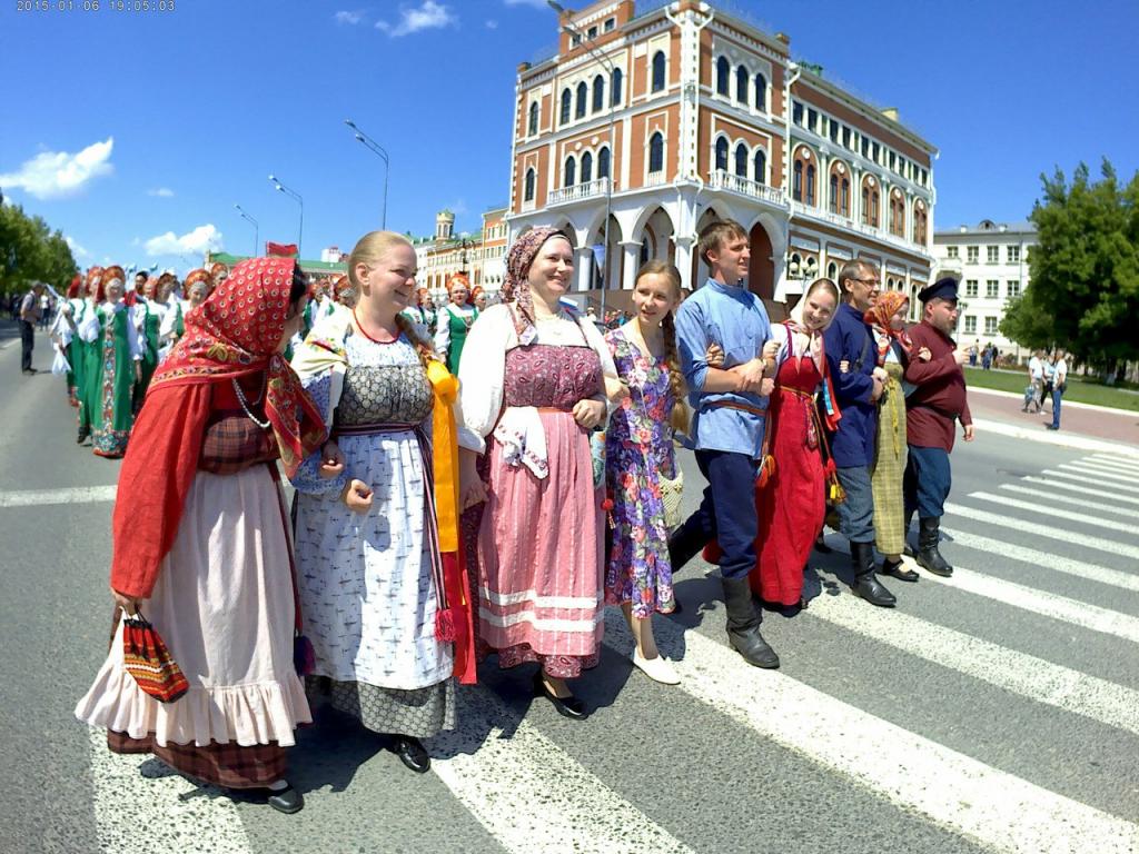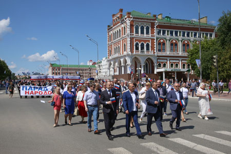 В столице Марий Эл в 11 часов праздник открыл «Парад Дружбы народов России». По центральной улице шли в единой колонне представители разных национальностей, проживающие на территории республики. Это представители русского, марийского, татарского народов, чуваши, удмурты, украинцы, белорусы, узбеки, таджики, азербайджанцы, осетины, грузины, члены еврейской организации. В шествии приняли участие больше 1000 человек. К всероссийскому шествию «Парад Дружбы народов России» в Марий Эл присоединились и студенты, обучающиеся в вузах республики: индийцы, киргизы, туркмены, представители африканского континента, арабского мира, средней Азии. Также к шествию присоединились байкеры, кадеты, военнослужащие и члены клуба исторической реконструкции. Большинство участников парада были одеты в традиционные национальные костюмы. К участникам шествия присоединились члены правительства республики, врио Главы Марий Эл Александр Евстифеев.