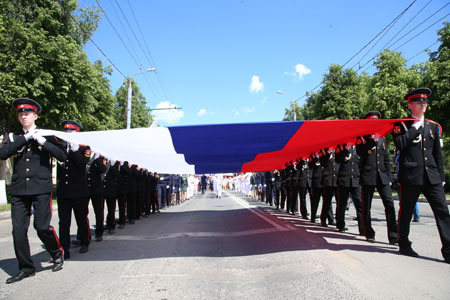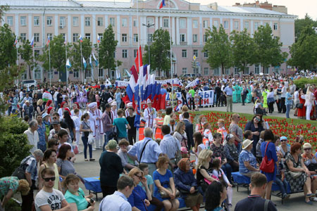 По ходу движения колонна сделала остановку у Монумента Воинской славы. Завершающей точкой шествия стала площадь у Марийского национального театра драмы им. Шкетана, где прошел митинг-концерт. Открыл его Глава республики Александр Евстифеев: