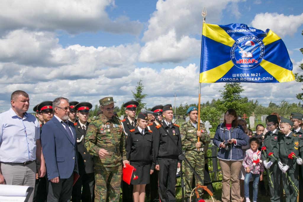 В мероприятии приняли участие ветераны Великой Отечественной войны, члены поискового отряда «Демос», военнослужащие, кадеты, высокопоставленные чиновники правительства Марий Эл — полномочный представитель Главы республики Сергей Трухин, члены местной администрации, местные жители.