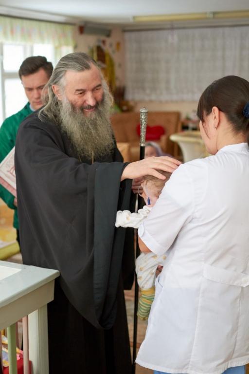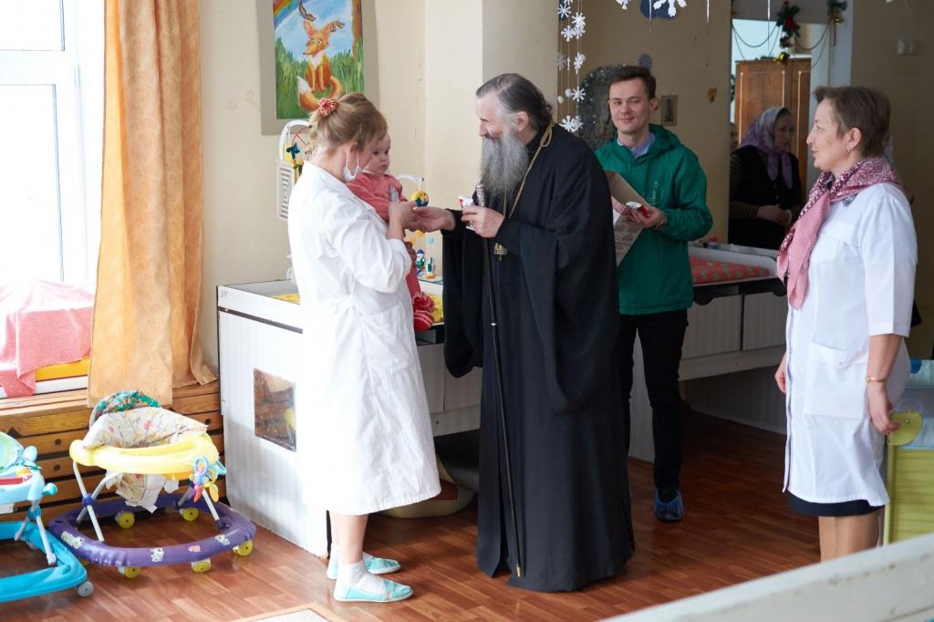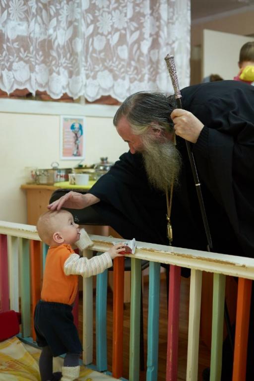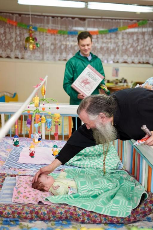 Вместе в Владыкой в гости к детям приехал протоиерей Алексий Вязов, окормляющий это учреждение уже в течение многих лет, а также православные добровольцы, взявшие шефство над «Домом ребёнка» и посещающие его почти каждую неделю.