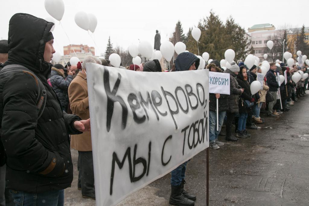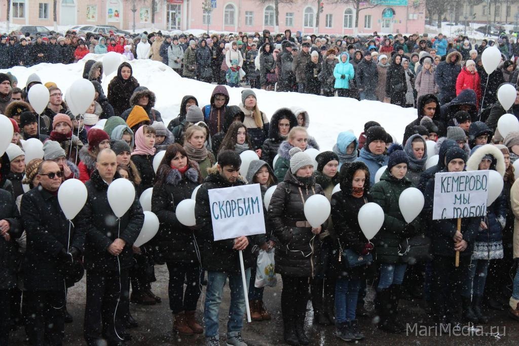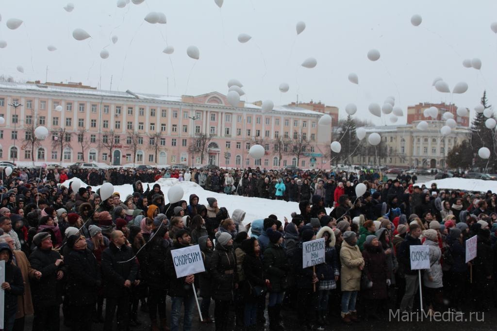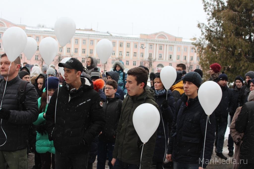 Сегодня в столице Марий Эл прошла акция памяти «Кемерово, мы с тобой!». Жители города собрались на площади Ленина, чтобы вспомнить о тех, чьи жизни унесла воскресная трагедия. Главным словом, которое звучало из уст участников, стало слово «скорбь». В память о погибших была объявлена минута молчания, а затем в небо было запущено 200 белых шаров.