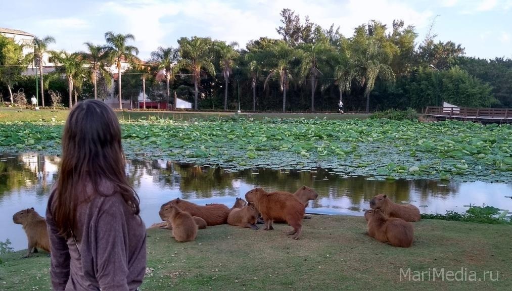 И. В.: Бразильская природа- это восторг! Здесь много фантастически красивых мест: парк «Ленсойс Мараньесис», джунгли Амазонии, десятки километров лазурных пляжей, каскады водопадов Игуасу, горы, цветы и удивительные животные. Я видела потрясающе красивых сверкающих бабочек, колибри, туканов, диких попугаев и обезьян. В парках часто можно встретить капибар — грызунов размером с поросенка, павлинов и другую живность.