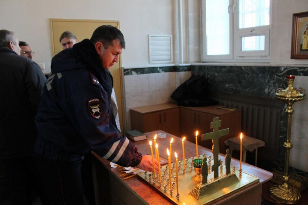 После этого в Воскресенском соборе города член Общественного совета при МВД по Марий Эл протоиерей Александр Бачурин и руководитель епархиального общества трезвости во имя иконы Пресвятой Богородицы «Неупиваемая Чаша» иерей Андрей Кочаков совершили заупокойное богослужение с поминовением тех, кто погиб в дорожно-транспортных происшествиях. В богослужении приняли участие сотрудники и ветераны Госавтоинспекции, сообщили в пресс-службе епархии.