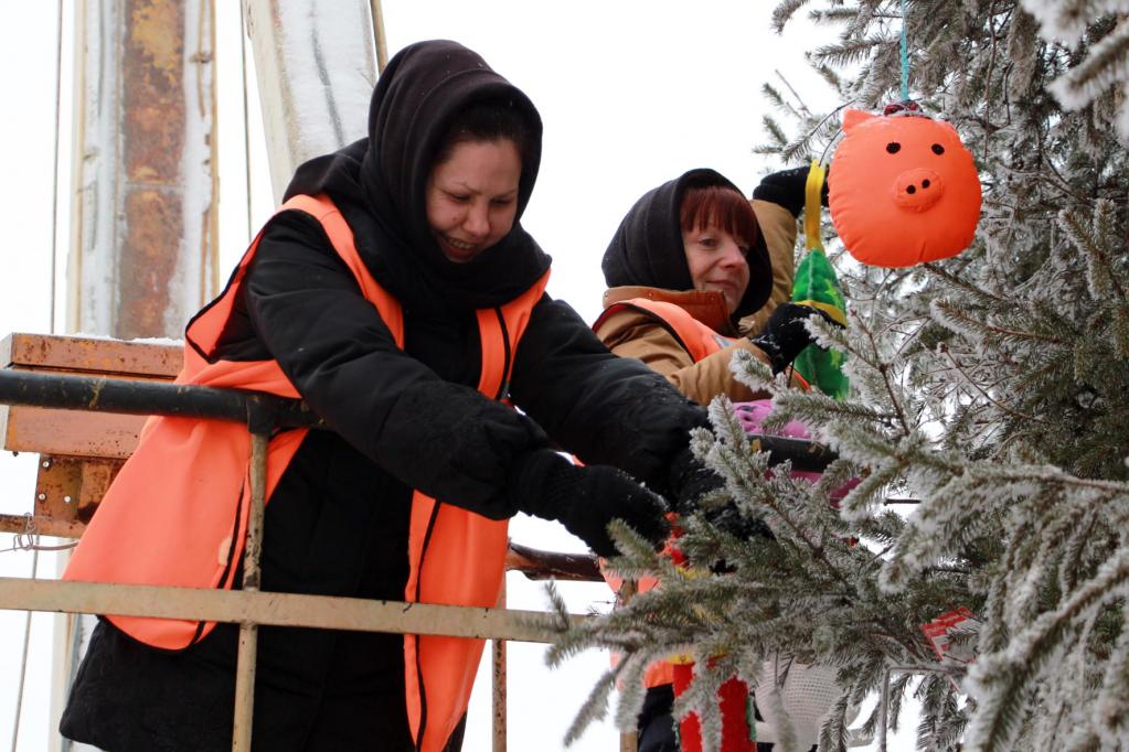 Посетители новогодних мероприятий обязательно обратят внимание на забавные фигурки снеговиков и снежинок, а также разнообразных поросят и свинок, как символов наступающего года, которые изготовили в исправительной колонии № 7. Кстати, небольшой вклад в украшение 20-метровой зеленой красавицы внесли и осужденные участка колонии-поселения — организаторы акции взяли их с собой в качестве помощников.