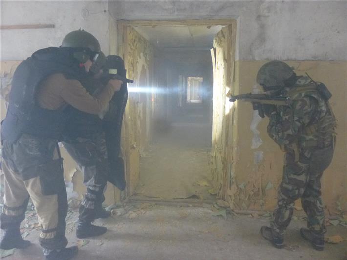 Кульминацией полевого выхода стало проведение тактико-специального занятия по поиску и нейтрализации условного противника. Личным составом отрабатывались задачи по задержанию вооруженных преступников в здании, на улице, в населенном пункте и в лесистой местности.