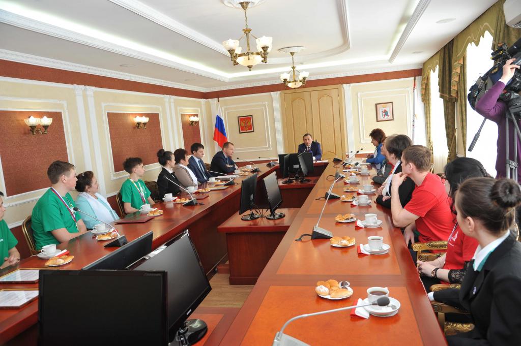 Александр Евстифеев встретился с молодыми профессионалами — победителями и призёрами движения Worldskills. Ребят торжественно чествовали в Доме правительства республики.