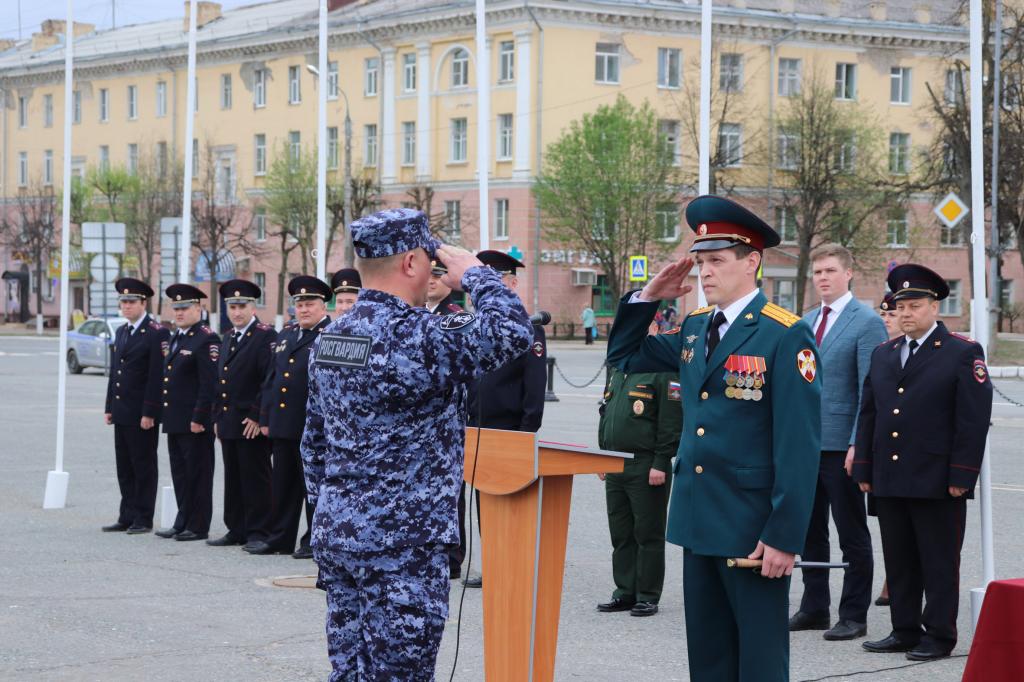 Накануне Дня Победы на площади им. В.И. Ленина прошёл открытый общегородской гарнизонный развод комплексных сил и средств, задействованных в охране общественного порядка на территории города, руководил которым глава регионального УВД полковник полиции Михаил Щеглов. В общем строю с сотрудниками полиции стояли экипажи групп задержания вневедомственной охраны Управления Росгвардии по Марий Эл, сотрудники военной полиции, представители частных охранных организаций и народные дружинники.