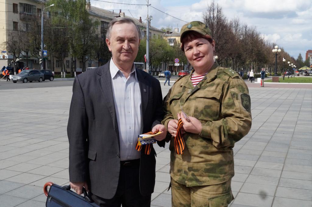 В Центральном парке культуры и отдыха Йошкар-Олы Росгвардейцы и представители всероссийского общественного движения «Волонтеры Победы» вручали горожанам символ воинской славы и уважения к истории страны. Раздавая георгиевские ленточки, Росгвардейцы рассказывали историю их создания, о том, как их рекомендуется носить, и поздравляли прохожих с наступающим праздником 9 Мая.
